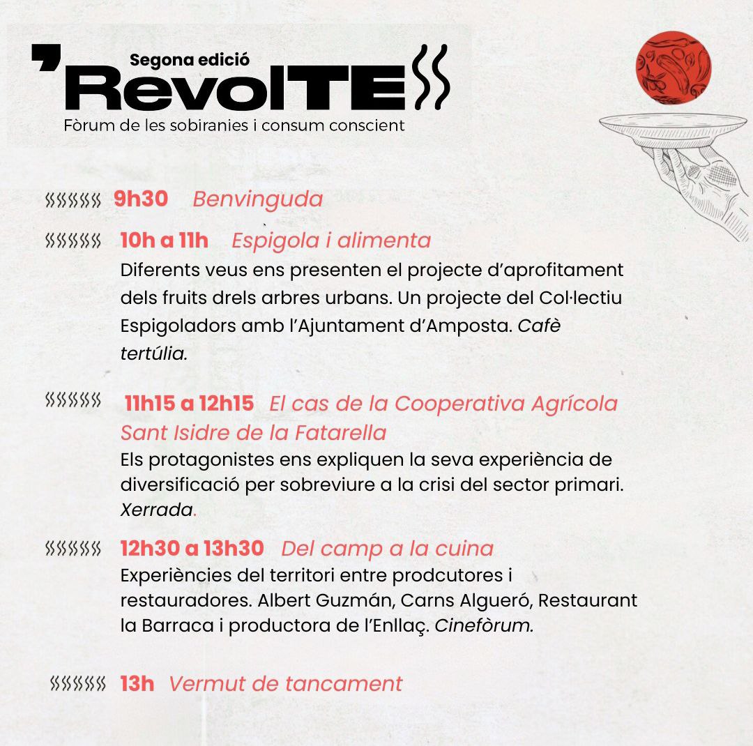 Punt de trobada per a productores, consumidores, col·lectius i entitats que volen repensar les sobiranies i construir alternatives des del territori. Horari: 9:30 h. Benvinguda. 10 a 11 h. Espigola i alimenta.Diferents veus ens presenten el projecte d’aprofitament...